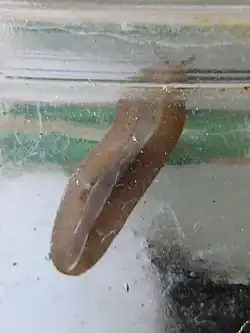 This slug has a unique, very narrow foot; juvenile specimens have a foot 1 mm (0.039 in) wide and adult specimens have a foot that is only 4 or 5 mm (0.16 or 0.20 in) wide.