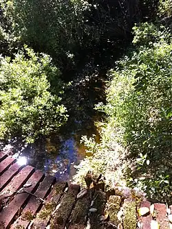 Along the Crystal Springs Trail, just southwest of Cañada Road and its I-280 overpass, is the Homestead Pond. This 12 acre pond and marsh is host to Western pond turtles (Actinemys marmorata) and is adjacent to the south fork of Laguna Creek.[19] The pond is the site of a restoration effort by the San Francisco Public Utilities Commission which will include removal of non-native eucalyptus trees and planting of native oaks and grasses.[20]