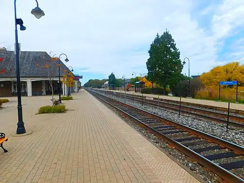 Lake Forest is a railroad station in Lake Forest, Illinois, served by Metra's Milwaukee District North Line. The station is located on 10205 North Waukegan Road (IL 43), and is 28.4 miles (45.7 km) away from Chicago Union Station, the southern terminus of the line.[2] In Metra's zone-based fare system, Lake Forest is in zone 4. As of 2018, Lake Forest is the 82nd busiest of Metra's 236 non-downtown stations, with an average of 607 weekday boardings.[1]