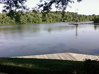 The lake was created by The Rouse Company in 1966 during the development of Columbia. The company and its homeowners association claimed it was named after the first Indian settlement in Howard County and "Kittamaqundi" in the tribe's language translates to "meeting place."[1][3][4] Kittamaqundi actually was a 17th-century Piscataway village 40 miles (64 km) south that was named after its ruler, Kittamaquund.[5][6][7][8][9][10][11][12][13][14][15] "Kittamaqundi" translates to "Great Beaver Place" or "Strong Bear".[16]