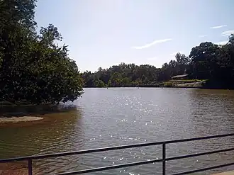 Lack of water was not the only problem the lake experienced. At times, the water was "clouded or turbid from rain-borne particles" as dredging was attempted to make the reservoir deeper. Increased mud and silt closed the lake for hundreds of days by 1912, accompanied by costs in the thousands of dollars for upkeep.[10][20][21][22][23][24][25] One Baltimore County newspaper in 1877 described the lake as a "receptacle of filth" from nearby industry, including the junction of the Northern Central Railroad and Green Spring Railway, and declared that "Towsontowners never drink any water when they get into the city", even as others admired the lake as a "charming scene."[26][27][28]
