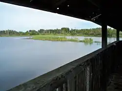 The Biggar Trout Pond is located about 2 km (1.2 mi) north of Biggar. It is accessible from Highway 4. It has an aerator, a grill, a fishing bridge, covered picnic areas and an island (sometimes bigger sometimes smaller depending on water levels. Also, depending on water levels, there might be 2 islands)[2] It is about 200 m (660 ft) wide and long. It is about 1.5 m (4 ft 11 in) deep. It is stocked with trout by local volunteers.[3]