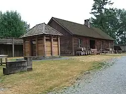 The first Europeans to stay in the area permanently were the traders of the Hudson's Bay Company (HBC). In 1827, Fort Langley was built on the banks of the Fraser River, in the area now known as Derby Reach. It was one of a string of trading posts built along the Pacific Coast to compete with American fur traders for the rich pelts available in the region. Farming as well as cranberry and salmon exports soon replaced fur trading as the fort's primary source of income.