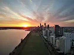 Langley Park is an open space in the central business district of Perth, Western Australia. Running alongside Riverside Drive, it is grassed, rectangular in shape and has approximate dimensions 900 by 100 metres (2,950 ft × 330 ft). It was created by reclaiming land from the adjacent Swan River between 1921 and 1935, to provide open space near the city.[1]