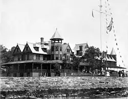 The club was originally housed in a small church in Manor Park, overlooking Horseshoe Harbor.[2] The mission stated in its incorporation was "to advance, foster and support the sport of yachting, the art of yacht designing and construction, and the science of seamanship and navigation, and to acquire and provide a suitable and convenient clubhouse, anchorage and harbor basin for the use of Its members."[4]