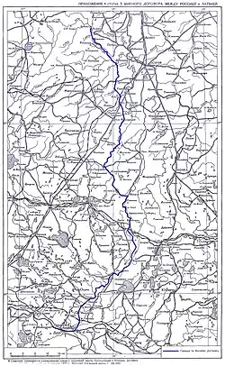 According to the 2007 agreement on the Russian-Latvian State Border,[6] the state border between Latvia and Russia starting from the intersection point of the state borders of Latvia, Russia and Belarus, and ends with the joint borders of Latvia, Russia and Estonia.[7]