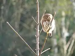 The marsh has been a well established year-round home for a large variety of birds for some time, as well as home to several fish species, including coho salmon fry and several trout species.[1] Some rare birds have been found at this site, such as the Red-flanked bluetail, which has only ever been spotted in Canada one other time as of 2016.[10] One species of raptor that can be found in the marsh area is the Northern Pygmy Owl or Vancouver Island Pygmy-Owl (Glaucidium Gnoma Swarthi), which is endemic to the area.[11]