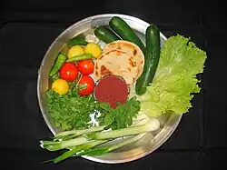 Vegetarian cuisine plays an important role in the cuisine of Lebanon. Being located in the Levant, vegetables and herbs (wild or cultivated) are abundant in the fertile landscape and serve as a main base of the cuisine.[73] For Lebanese Christians, including Catholic (Maronites and Melkites) and Orthodox, fasting from meat is practiced over the Lenten period (from midnight to noon) during Easter. Where abstention of meat is observed, the food is referred to as akl aateh (meaning food "cut" from the diet, such as meat or absent from meat). The particular food that is "cut" varies over different traditions.[74]