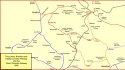 In 1851 the railway network of the West Riding was developing rapidly, and a railway named the West Riding Union Railway had planned to build a line connecting Leeds, Halifax and Bradford. It had parliamentary authority in the West Riding Union Railways Act 1846 (9 & 10 Vict. c. cccxc) to do so, but in 1847 it had been subject to an amalgamation which led to the formation of the Lancashire and Yorkshire Railway. The L&YR had other priorities, and the construction of the Leeds to Bradford direct line fell away, to the dismay of the population concerned.[4]