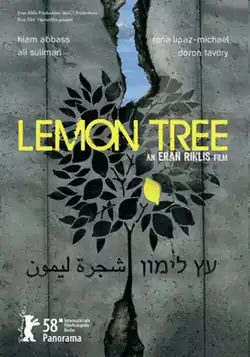 Lemon Tree (Hebrew: עץ לימון, romanized: 'Etz Limon; Arabic: شجرة ليمون, romanized: 'Shajaret Leimoun) is a 2008 drama film directed by Eran Riklis, co-written by Suha Arraf. Starring Hiam Abbass, Ali Suliman, Danny Leshman and Rona Lipaz-Michael,[2] it follows the legal efforts of a Palestinian widow to stop the Israeli Defense Minister, her new next door neighbor, from destroying the lemon trees in her family farm. At the same time, she develops a human bond with the minister's wife.[3]