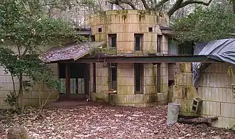 The Lewis House, also known as Lewis Spring House, is a historic home in Tallahassee, Florida, located north of I-10, at 3117 Okeeheepkee Road. It was built in 1954.[2] On February 14, 1979, it was added to the U.S. National Register of Historic Places. It was designed by Frank Lloyd Wright for George Lewis II, President of the Lewis State Bank, and his wife Clifton. George Lewis gave the name "Spring House" to the home "for the natural spring and small stream that flows from the property."[3] The National Trust for Historic Preservation describes its significance: "The novel hemicycle form of Spring House represents a late, and little-known, stage in Wright’s long, prolific career. Although there are approximately 400 intact houses attributed to Wright throughout the country, only a fraction were from his hemicycle series."[2]