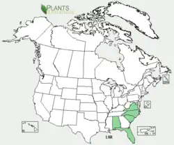 Lilium iridollae grows along streams in wet pine woodlands and in pitcher plant bogs in the southeastern United States.[6] It is mainly found in Florida, North Carolina, South Carolina, Alabama, and Virginia. This species has become endangered in Florida and threatened in North Carolina.[5]