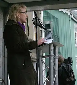 Lilja Mósesdóttir speaking at Austurvöllur in 2009. | |
