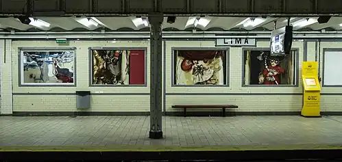 Lima is a station on Line A of the Buenos Aires Underground.[1] Passengers may transfer from here to the Avenida de Mayo station on Line C and Metrobus 9 de Julio.[2] The station belonged to the inaugural section of the Buenos Aires Underground opened on 1 December 1913, which linked the stations Plaza Miserere and Plaza de Mayo.[3]