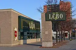 The Liquor Control Board of Ontario (LCBO, French: Régie des alcools de l'Ontario) is a Crown agency that retails and distributes alcoholic beverages throughout the Canadian province of Ontario.[5] It is accountable to the Legislative Assembly through the minister of finance.[5] It was established in 1927 by the government of Premier George Howard Ferguson to sell liquor, wine, and beer.[6] Such sales were banned outright in 1916 as part of prohibition in Canada.[7] The creation of the LCBO marked an easing of the province's temperance regime. By September 2017, the LCBO was operating 651 liquor stores.[8]