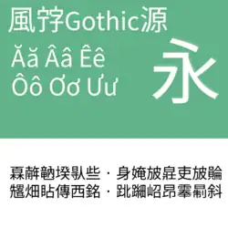 4 fonts, both Fandol Song and Fandol Hei has two weights (regular/bold). Originally for CTeX, there is debate on whether the font is FOSS as the author may have revoked the license.[36][37] | |||