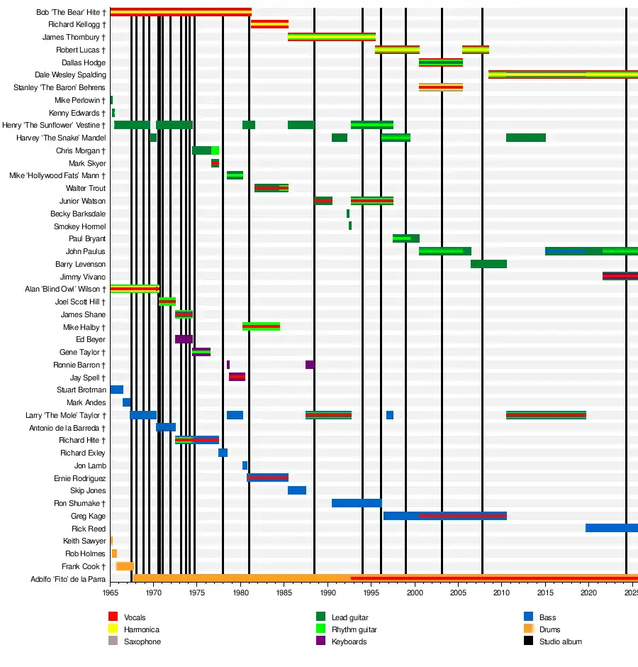 | Bob "The Bear" Hite | 1965–1981 (until his death) |