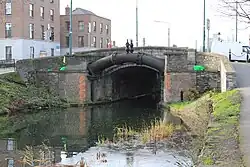 | La Touche Bridge | Portobello Bridge | Rathmines Road Lower, Richmond Street South - R114 | Built in 1791, named after William Digges La Touche,[20] a director of the Grand Canal Company. In 1861 a horse-drawn carriage fell into the lock with a loss of all 6 passengers and all horses.[21] Tram tracks were first added in 1871,[22] with overhead electricity completed in 1896.[23] During the Easter Rising and Civil War there were a number of events that took place at the bridge due to its strategic location.[24] In 1928 a bridge widening scheme was undertaken jointly by Dublin Corporation and Rathmines Urban District Council, the bridge was widened by 10 feet and steel lock gates were added.[25] Maintenance work was carried out in 2004 (steel parts of bridge replaced). | ![]() |