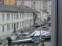 - September 21, 2006 – Hurricane Gordon became extratropical about 440 km (270 mi) west of the coast of Portugal and proceeded to pass just north of the Spanish province of Galicia before turning to the north and looping off western Ireland. In Spain, the former hurricane produced wind gusts of 183 km/h (114 mph) at Punta Candieira in Galicia,[78] and waves of 7 m (23 ft) in height along the coast.[79] The winds left about 100,000 people without power in Spain and caused four injuries there. High winds also left 126,000 people without power in Northern Ireland, where one injury occurred.[78] The storm brought moist air that contributed to record warm temperatures across portions of the United Kingdom.[80]