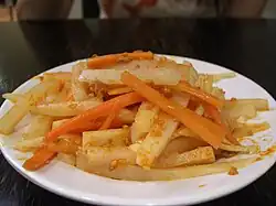 | Tuhau | Sabah | Condiment | A plant from the genus Etlingera. Usually eaten raw after mixed with chili, vinegar, and salt. Also fried. |