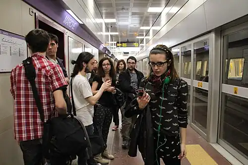The Milan Metro is the rapid transit/metro system serving Milan, Italy. The network comprises 5 lines (two of which driverless), identified by different numbers and colors, with a total route length of 112 kilometres (70 mi) and 125 stations. The system has a daily ridership of over one million.[1] The metro network is connected to the Milan suburban railway service through several stations. Metro lines are identified by the letter "M", while suburban line numbers are preceded by the letter "S". Milan Metro is the largest rapid transit system in Italy in terms of length, number of stations and ridership; it is the fifth longest in the European Union and the eighth in Europe.[2][3][4][5]
