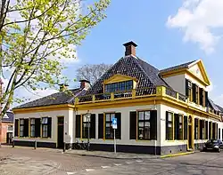 | Five bays wide, large building under high hipped roof with corner chimneys and a big cornice | 1750-1800 | Gouden Pand 1 | 53°19′16″N 6°51′22″E / 53.32113°N 6.8562°E | 8214 | ![]() | ||