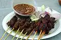 | Satay | Meat dish | Dish of seasoned, skewered and grilled meat, served with a sauce. | |