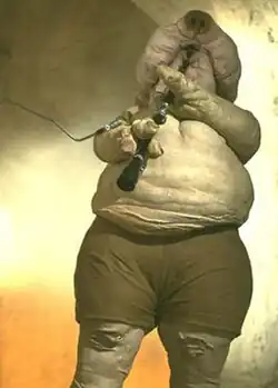 The Nikto people are a humanoid species from the planet Kintan who have scaly skin, black eyes, and symmetrical horns and spikes on their faces. Subspecies include Green Nikto (Kadas'sa'Nikto) and Red Nikto (Kajain'sa'Nikto).[13][14] Niktos are first introduced in Return of the Jedi (1983) in the form of Klaatu, a Green Nikto who serves Jabba the Hutt.[15] Red Nikto appear in The Phantom Menace (1999), Attack of the Clones (2002), and Revenge of the Sith (2005).[14] Ima-Gun Di is a Red Nikto Jedi Master in Star Wars: The Clone Wars.[16] Nikto of both subspecies were protecting The Child in the episode "Chapter 1: The Mandalorian" of The Mandalorian.