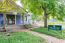Original construction was behind Johnson Hall, the building was moved to its present location in 1979 [n 42] |