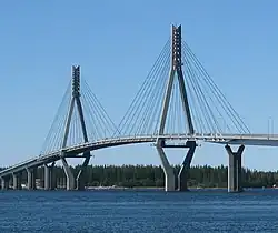 2 | Replot Bridge | Raippaluodon silta | 250 m (820 ft) | 1,045 m (3,428 ft) | Cable-stayed Steel deck, concrete pylons |