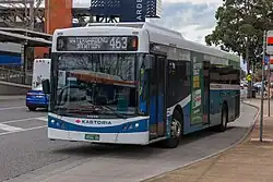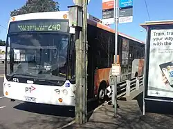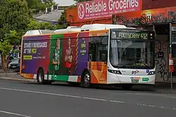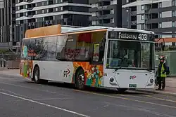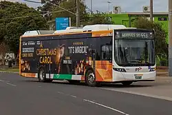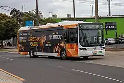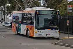 Melbourne's bus network is a major transport system in Australia, comprising around 400 bus routes.[1] The bus network is run by private companies under contract to Public Transport Victoria. Buses in Melbourne use the Myki ticketing system, with the exception of SkyBus services.