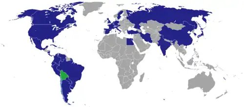 This is a list of diplomatic missions of Bolivia, excluding honorary consulates.