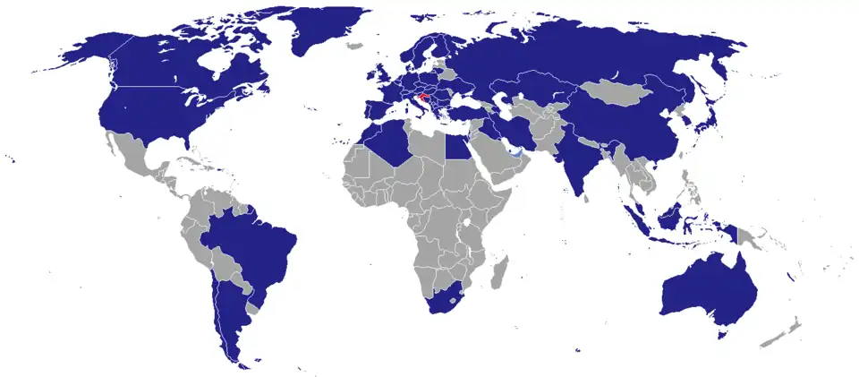 - ^ a b c d e f g "Diplomatic and Consular Corps and International Organizations in Bosnia and Herzegovina" (PDF). Department of Diplomatic Protocol, Ministry of Foreign Affairs of Bosnia and Herzegovina. March 2024. Retrieved 17 April 2024.