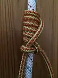 | Schwabisch hitch | A friction hitch tied around a thicker rope that can slide while unloaded, but locks when loaded. Similar to the Prusik | ||