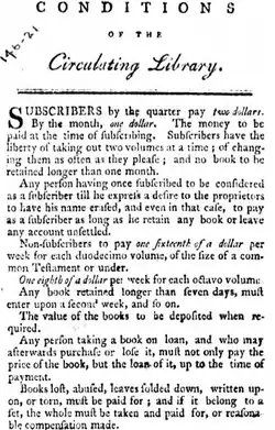 - ^ a b c d e f g h i j k l Charles K. Bolton (February 1907). "Circulating Libraries in Boston, 1765-1865". Publications of the Colonial Society of Massachusetts. 11. Retrieved September 3, 2010.