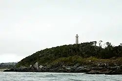 45°48.5′S 74°58.4′W / 45.8083°S 74.9733°W | Fl.W. period 10s fl. 0.2s, ec. 9.8s M(– –) |