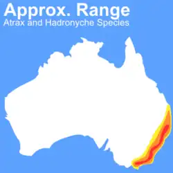 Range of the two genera (Hadronyche and Atrax) of venomous Australian funnel-web spiders