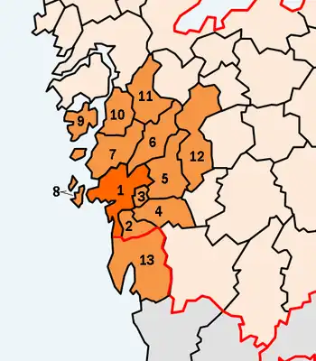 | Municipality | Population | Area[1] | Density[2] | Part |