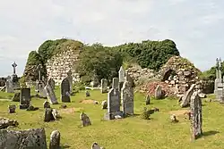 tradition of church now ruined belonging to Franciscan Friars purportedly founded by the sept of McFall (Macfaull) evidence lacking; also suggested as nuns or Dominican Friars |