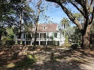Examples of slave housing can be found on many of the extant plantation complexes. Historically housing for enslaved people on Louisiana plantations (prior to the reconstruction era), featured cabins consisting of two rooms, with one family in each room.[16] After the American Civil War in 1865, the United States of America had abolished slavery, and the architecture changed for laborers on plantations to include more space, one example of this is found at the Allendale Plantation in Port Allen.[16]