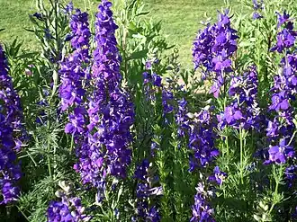 | Delphinium spp. | larkspur | Ranunculaceae | Contains the alkaloid delsoline. Young plants and seeds are poisonous, causing nausea, muscle twitches, paralysis, and often death. | |