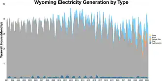 - ^ a b "Electricity Data Browser, Net generation for all sectors, Wyoming, Fuel Type-Check all, Annual, 2001–24". www.eia.gov. Retrieved April 13, 2025.