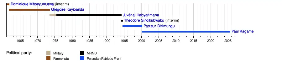 8. ^ Ronald Sullivan (7 April 1994). "Juvenal Habyarimana, 57, Ruled Rwanda for 21 Years". The New York Times. Retrieved 12 July 2024.