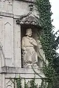 Four ecclesiastical figures | South side of Great Gatehouse | 1914 | Charles James Pibworth | Four statues | Portland stone | Grade I | [2][11] | ||