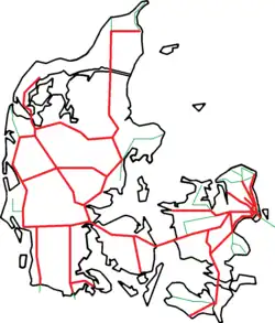 - ^ "BANE41: Railway network 1st January by railway system and unit". StatBank Denmark. Statistics Denmark. Retrieved 2009-05-13.
