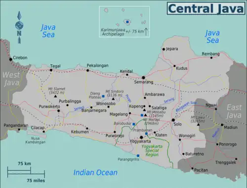 1. ^ Map of Java. Peta Pulau Jawa. El Sena, Surabaya. Accessed 1 July 2017.