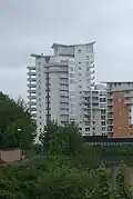 The city's growth is reflected in its growing skyline.[1] As is the case with many British cities, some of Cardiff's skyline comprises 1960s and 1970s residential and commercial tower blocks. However, current development trends for high-rise buildings include upmarket apartments and office space.