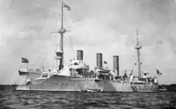 In the 1880s and 1890s, Germany built nine unprotected cruisers in three classes. These ships proved to be transitional designs, and experience gathered with them and a series of avisos helped to produce the first light cruisers of the German Navy.[1] The unprotected cruisers, generally designed for service in Germany's colonial empire, required great endurance and relatively heavy firepower. The first ships of the type, the two Schwalbe-class cruisers, were acquired in an effort to modernize an aged cruiser force that relied primarily on old sail frigates.[2] The new ships were primarily steam-powered but retained auxiliary sailing rigs. The second design, the Bussard class, was larger than the Schwalbe class and mounted newer, quick-firing guns, but was otherwise generally similar in capabilities.[3] SMS Gefion, the final cruiser of the type, represented an attempt to merge the requirements for a colonial cruiser with those for a fleet scout as a result of Germany's chronically small naval budget; the design was unsatisfactory, and rather than continuing to build unprotected cruisers, German naval designers began work on the Gazelle class, the first modern light cruiser of the German Navy.[4]