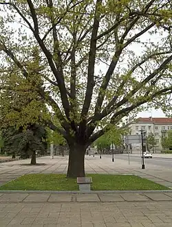 Tree planted by Liudvikas Jakavičius – Lietuvanis in 1929 in pro to the freedom of speech (Šiauliai, Lithuania). Picture year 2011.