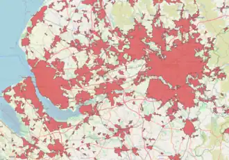 Map of built-up areas around Liverpool and Manchester